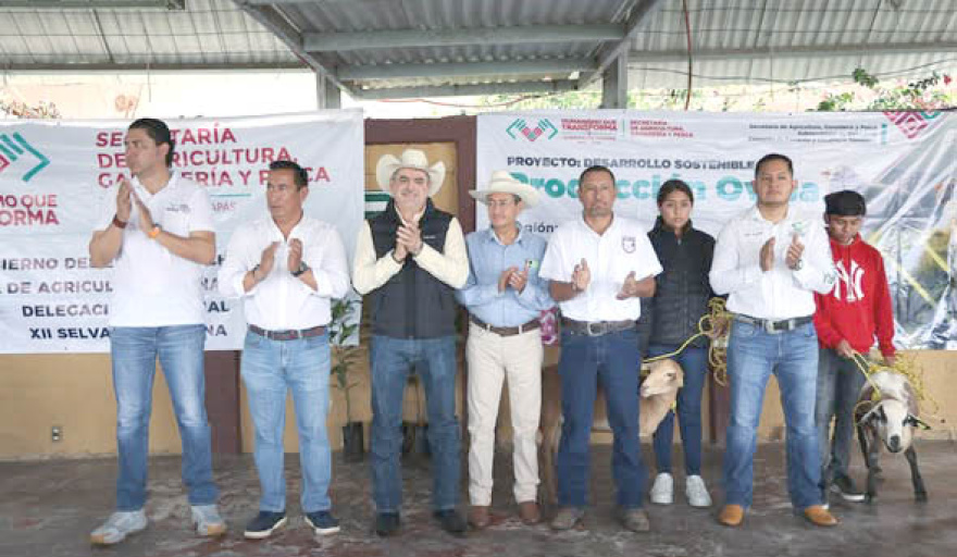 Durante el acto, se realizó la entrega de 10 mil vacunas contra la rabia paralítica bovina, así como proyectos apícolas, ovinos, plantas frutícolas y desparasitantes para el combate del gusano barrenador, fortaleciendo así las actividades productivas y sanitarias de la región.
