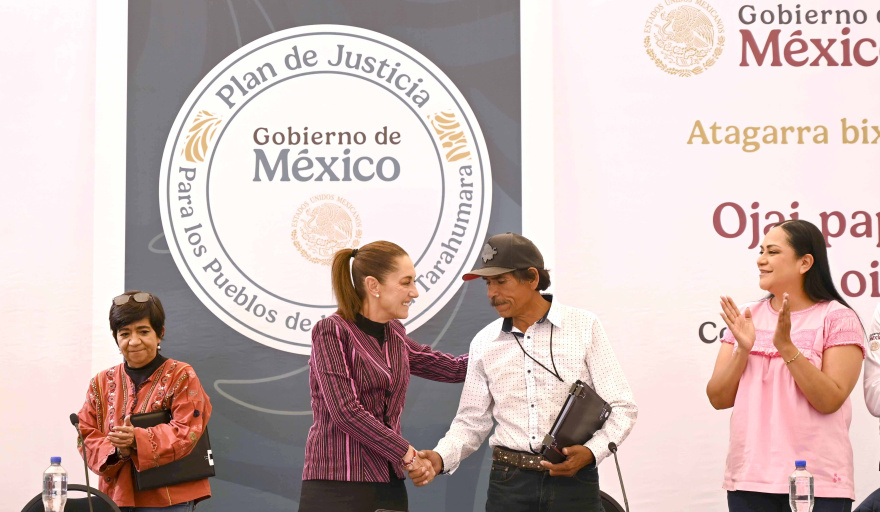“Estamos una vez más aquí en la Sierra, ahora con el pueblo Ódami, para entregar tierra. Se trata de entregarles lo que siempre fue de ustedes, pero que no había sido reconocido: 3 mil hectáreas que se están entregando el día de hoy para que ustedes puedan reconocerse y hacer justicia en el territorio, justicia territorial. Esto es parte del Plan de Justicia de los pueblos de la Sierra Tarahumara”, informó.