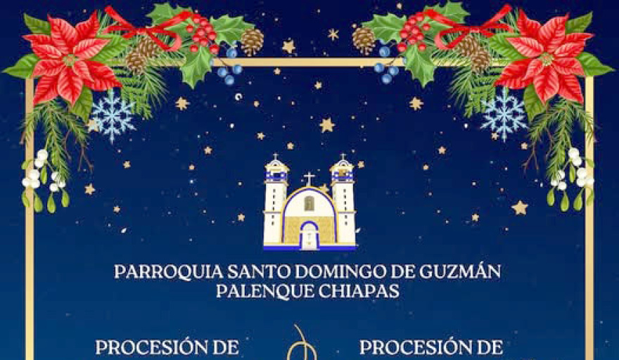 La Parroquia de Santo Domingo de Guzmán invita a toda la comunidad a sumarse a la Procesión de Navidad y Fin de Año, que se llevará a cabo los días 24 y 31 de diciembre, a partir de las 07:00 p.m., con punto de reunión en la Capilla de San Juan Diego, ubicada en la Colonia Bajluntié.