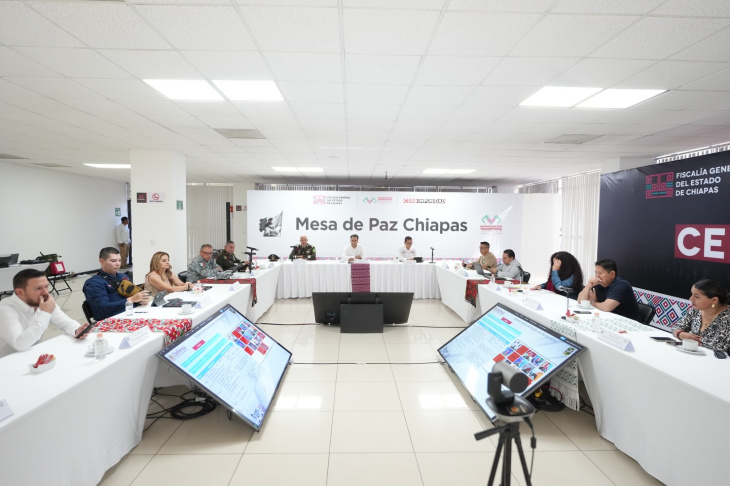 Desde las primeras horas de este lunes se llevó a cabo la Mesa de Paz en las instalaciones de la Fiscalía General del Estado, encabezada por el gobernador de Chiapas, Eduardo Ramírez Aguilar, con la participación de autoridades de los tres órdenes de gobierno, con el objetivo de reforzar las estrategias de seguridad y garantizar la paz en la entidad.