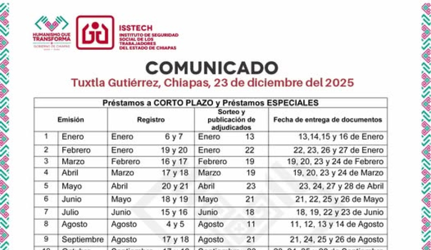 Las autoridades del ISSTECH destacaron que estos préstamos representan un apoyo importante para atender necesidades personales y emergencias económicas, por lo que invitaron a las y los trabajadores a mantenerse informados y realizar su registro en las fechas establecidas.