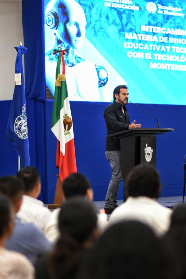 La innovación tecnológica también se extendió a la formación docente, con el Intercambio en Materia de Innovación Educativa y Tecnológica en el Tecnológico de Monterrey Campus Chiapas. Este encuentro fortaleció un modelo educativo sustentado en tres ejes: educación, tecnología y trabajo, impulsando la generación de nuevos saberes, la reflexión crítica, el diálogo y la colaboración interinstitucional.