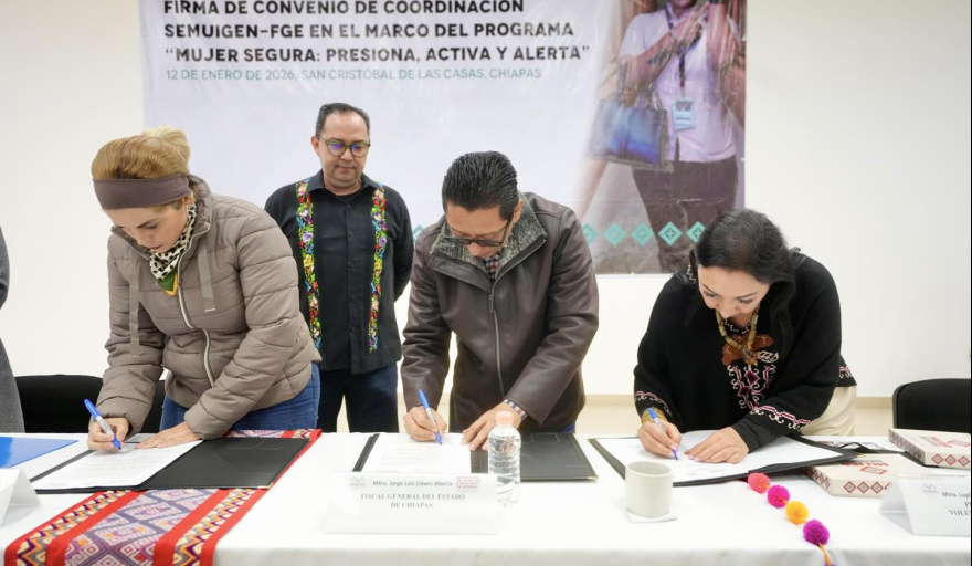 El fiscal general del estado, Jorge Luis Llaven Abarca, junto a la secretaria de la Mujer e Igualdad de Género, Marian Vázquez, firmaron el Convenio de Coordinación en materia de Prevención de la Violencia, mediante la implementación del programa “Mujer Segura: Presiona, Activa y Alerta”.