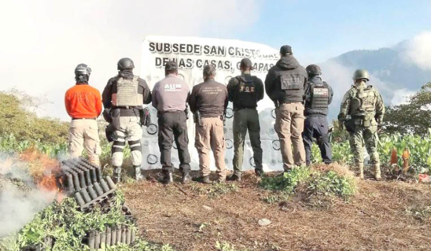 De acuerdo con el reporte oficial, durante recorridos de reconocimiento terrestre se detectaron sembradíos de enervantes en una comunidad del municipio Tsotsil de Santiago el Pinar, por lo que posteriormente se organizó un operativo para el desmantelamiento y destrucción de las plantas, las cuales fueron incineradas en el mismo lugar.
