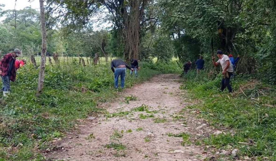 El H. Ayuntamiento de Palenque, que preside Jorge Cabrera Aguilar, a través del área de Servicios Públicos Municipales, llevó a cabo labores de limpieza y mantenimiento en las áreas verdes ubicadas a la orilla del camino de terracería rumbo al Río El Cajón.