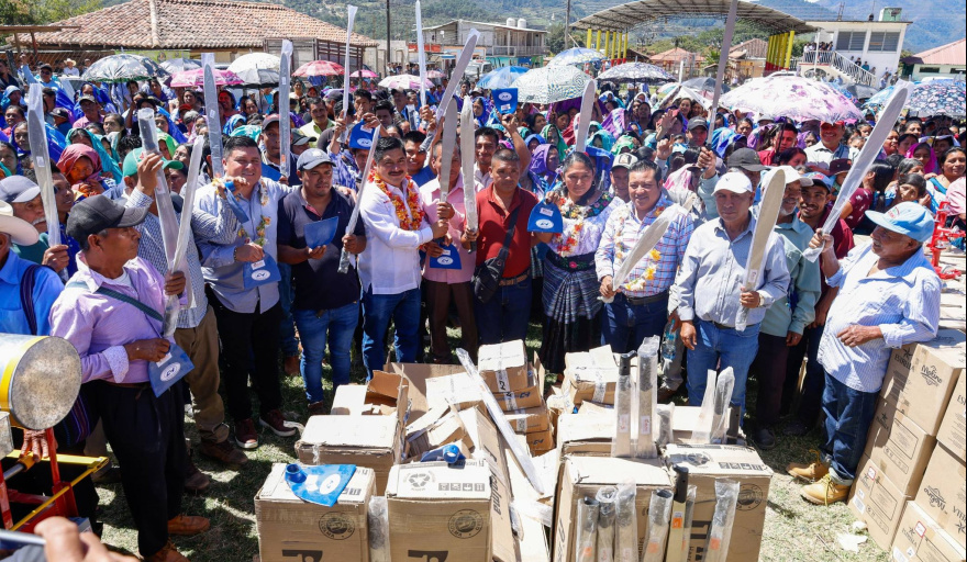 En atención a las necesidades expresadas por las familias de la región, Mario Hernández Aguilar, presidente municipal de Chilón, encabezó la entrega masiva de molinos eléctricos, molinos manuales y diversas herramientas de trabajo a habitantes de la población de Guaquitepec, acciones que fortalecen la economía familiar y respaldan el trabajo diario de las comunidades.