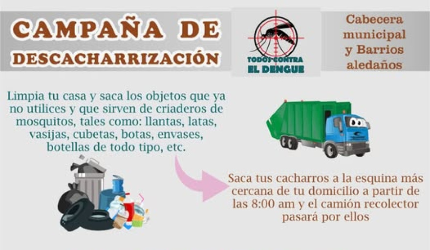 Durante la jornada se exhorta a las familias a sacar de sus hogares llantas, recipientes, electrodomésticos viejos y otros cacharros que acumulen agua, para que puedan ser retirados por las brigadas encargadas del operativo.