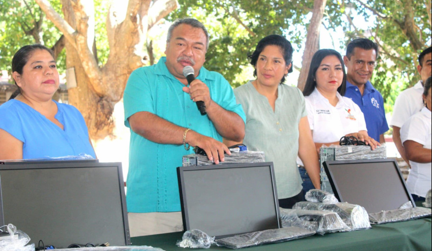 El presidente municipal de La Libertad, Porfirio Correa López, realizó la entrega oficial de cinco computadoras de escritorio a la Escuela Secundaria Técnica No. 46, con el objetivo de mejorar las condiciones de trabajo dentro del centro de cómputo de la institución educativa.