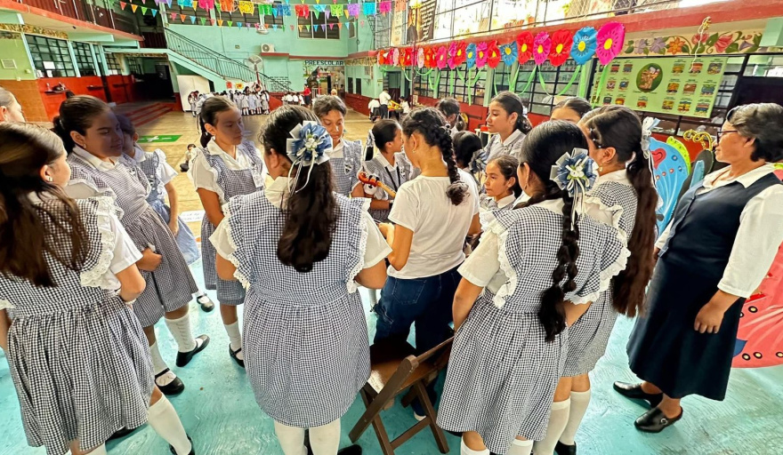Asimismo, se reconoció la participación y compromiso de los maestros y colaboradores del CONECULTA, entre ellos Brenda, Laura, Estefanía, Chely, Tania, Segni, Carlos Daniel e Isaac, este último alumno de la Casa de Cultura y destacado clarinetista, quienes compartieron su conocimiento y entusiasmo con los estudiantes. Finalmente, desde la Casa de Cultura reiteraron su disposición de continuar llevando el arte a más espacios educativos y agradecieron el apoyo brindado por la dirección y docentes del colegio.