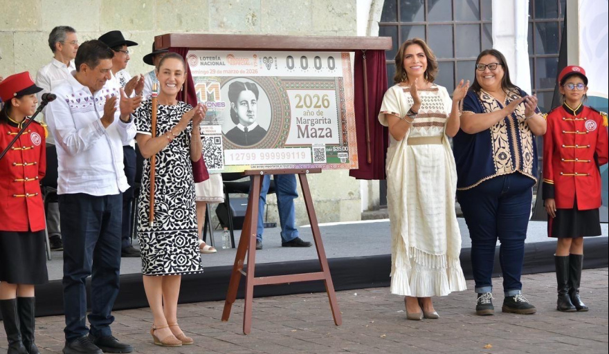 Desde Guelatao de Juárez, Oaxaca, la Presidenta de México, Claudia Sheinbaum Pardo, y la directora general de Lotería Nacional, Olivia Salomón, develaron el billete conmemorativo que rinde homenaje al “2026, año de Margarita Maza”, diseñado en el marco del Sorteo Zodiaco Especial No. 1740.