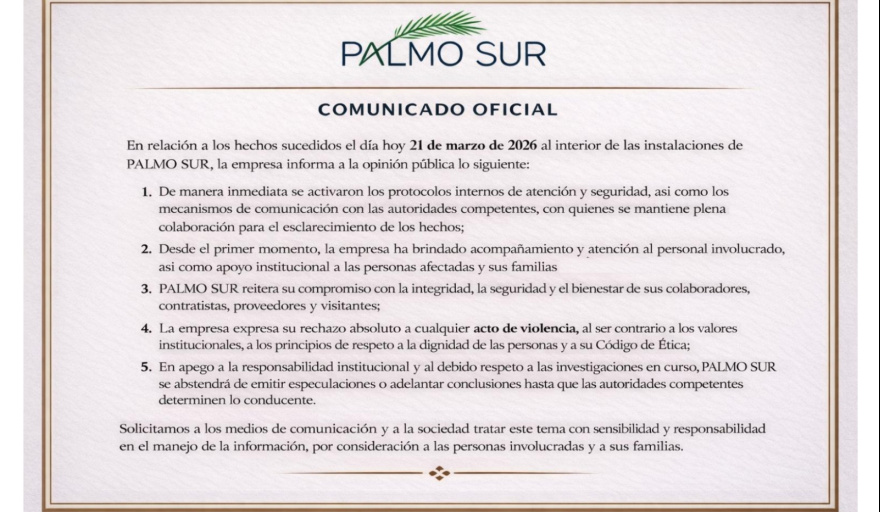 Comunicado Oficial de la Empresa Palmosur, en Palenque Chiapas.