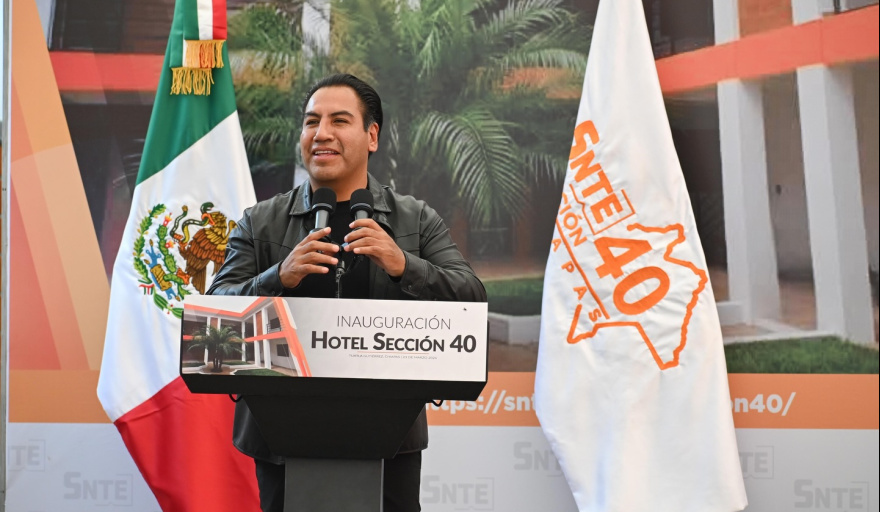 El gobernador del estado, Eduardo Ramírez Aguilar, acompañó al secretario general de la Sección 40, Oved Balderas Tovilla, en la inauguración del Hotel del Maestro, un espacio destinado a brindar apoyo y servicios a las y los docentes.