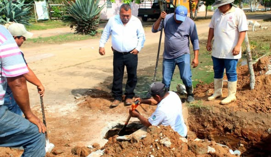 En atención a la solicitud de habitantes de la colonia Centro de La Libertad, autoridades municipales llevaron a cabo la reparación de un drenaje colapsado en la zona del malecón de la cabecera municipal.