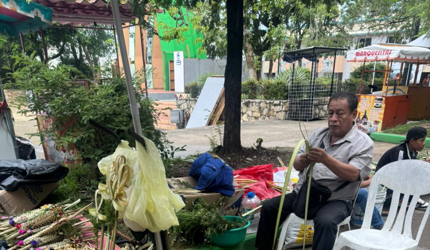 En el marco del Domingo de Ramos, comerciantes locales salen desde tempranas horas para ofrecer las tradicionales cruces elaboradas con hoja de guano, un símbolo representativo de esta fecha tan importante para la comunidad católica.