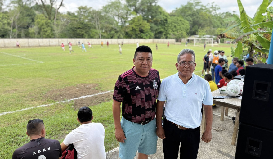 El presidente municipal de Salto de Agua, Humberto Sánchez Díaz, visitó la comunidad de La Preciosa Bulujib, donde acompañó a jóvenes durante la realización de un torneo de fútbol, como parte de las acciones para impulsar el deporte en el municipio.