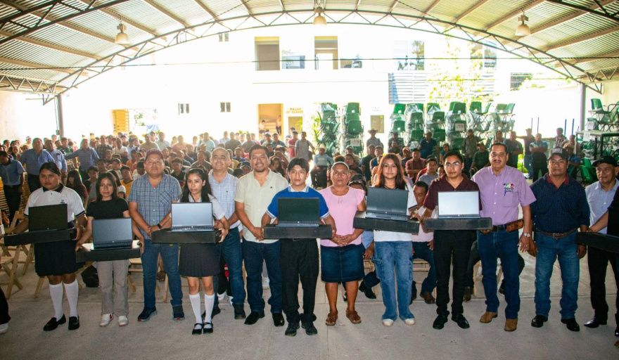 En la localidad de El Limar, el presidente municipal de Tila, Neiser Hernández López, encabezó la entrega de 42 laptops a estudiantes de distintos niveles educativos, como parte de las acciones para impulsar el desarrollo académico en el municipio.