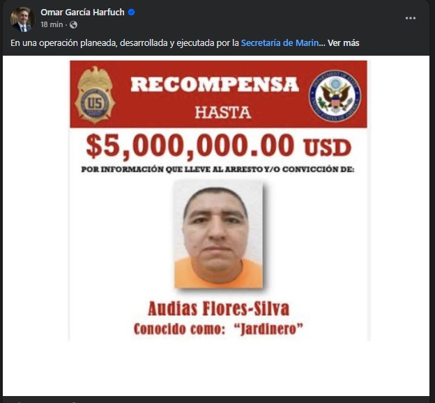 A través de sus redes sociales, detalló que en una operación planeada y ejecutada por la Secretaría de Marina, mediante sus Fuerzas Especiales, fue capturado Audias Flores Silva, alias “El Jardinero”.